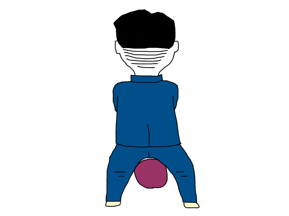 力丸は両足を広げたまま、球を持った両手をぶらんと下に垂らし、そのまま振り子のように動かした。球が股の下を前後に行き来している。凄くカッコ悪い。