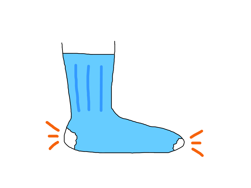 そんなこんなで意気揚々と戦いの場に乗り込んだ俺!だったんだけど…靴下のつま先、かかとがダブルで破れてて、いきなりの大ピンチ。しかも、すぐに女子にバレて「ダブル」というあだ名をつけられちまった!